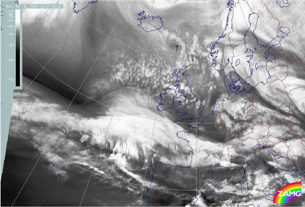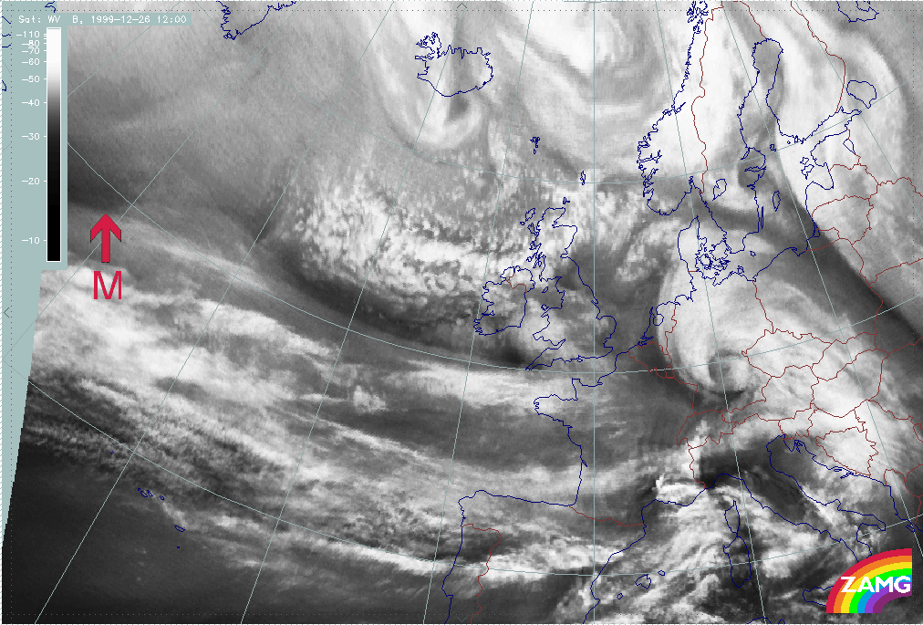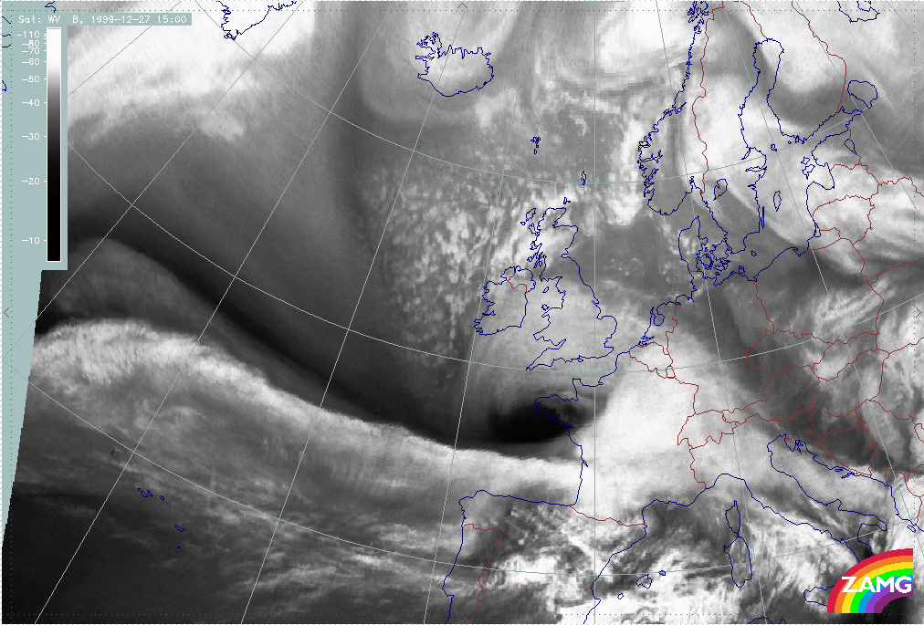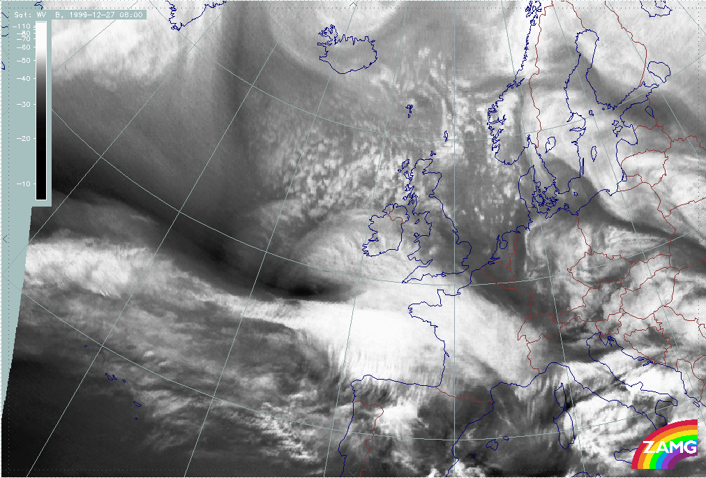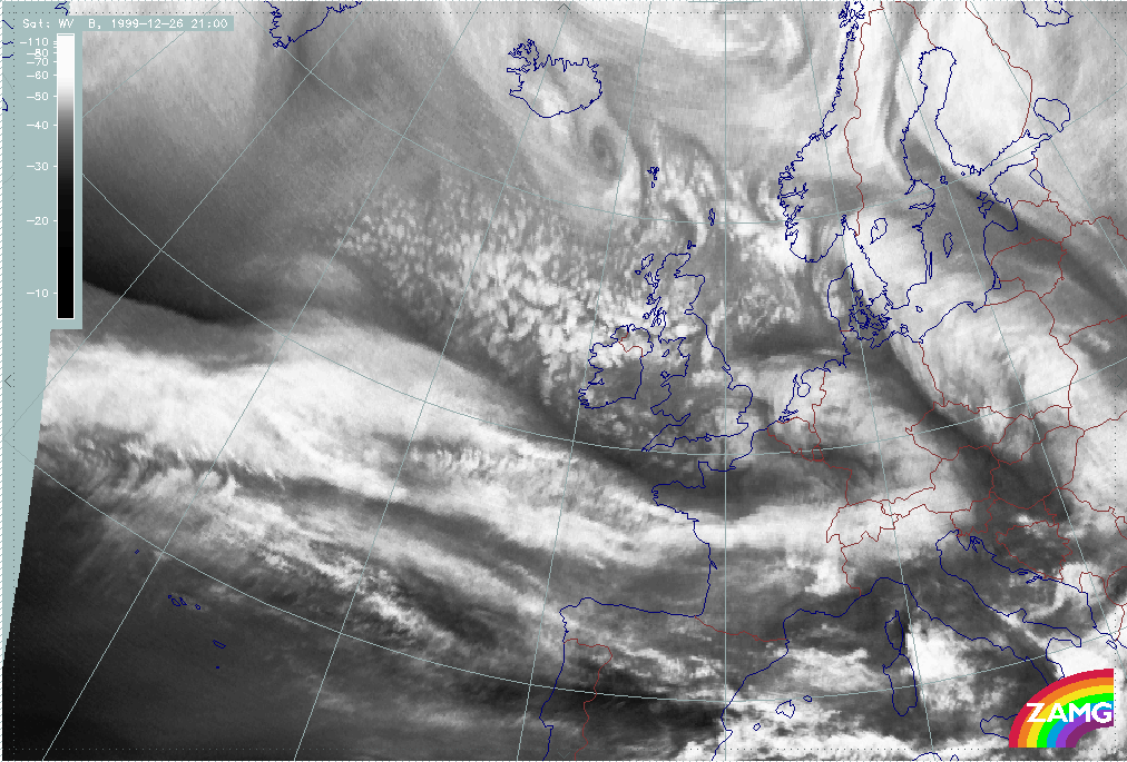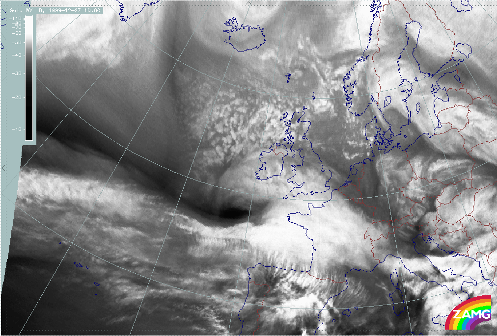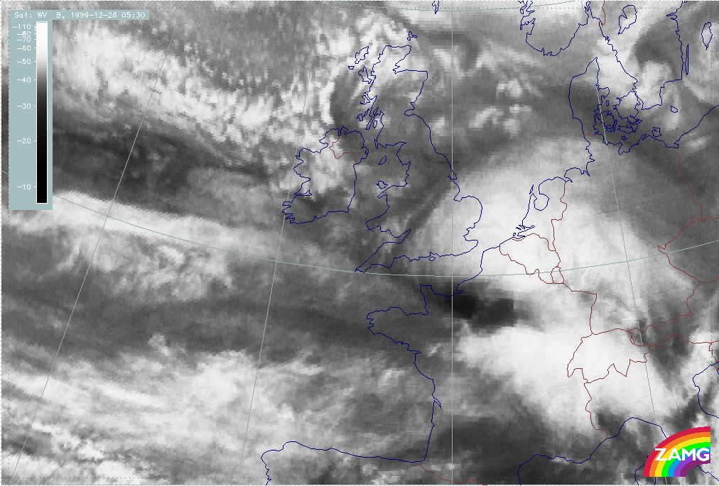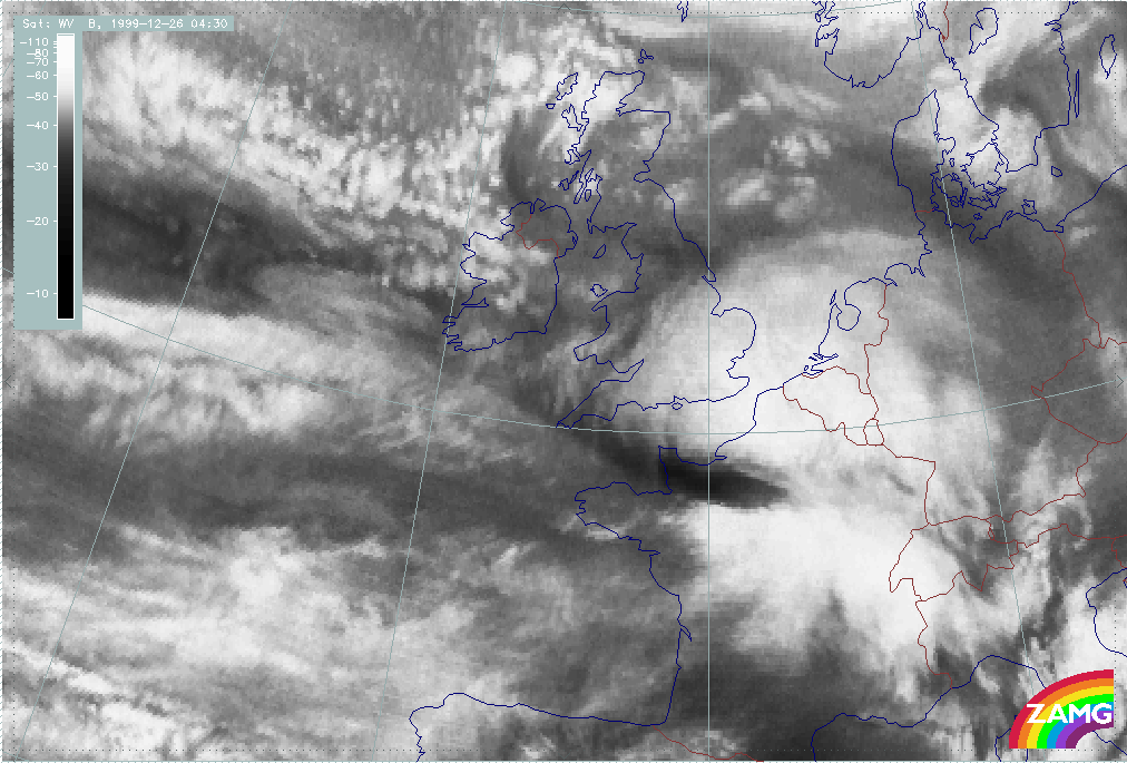 26 December 1999/12.00 UTC - Meteosat WV image; 26/12.00 - 27/18.00 UTC 3-hourly image loop