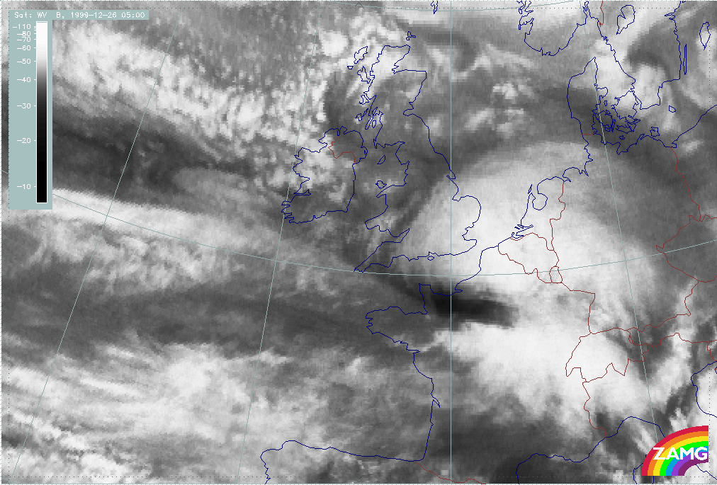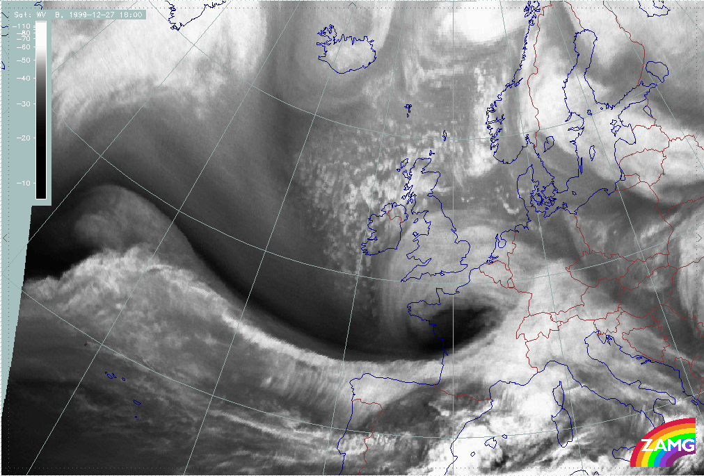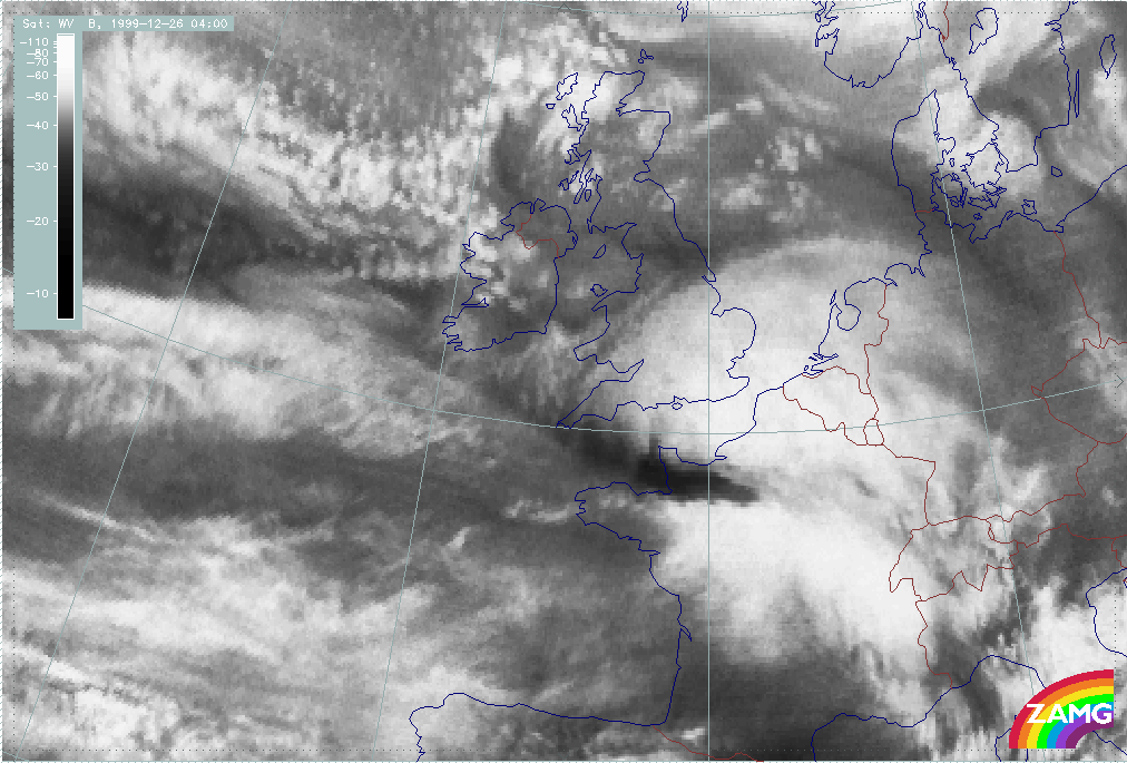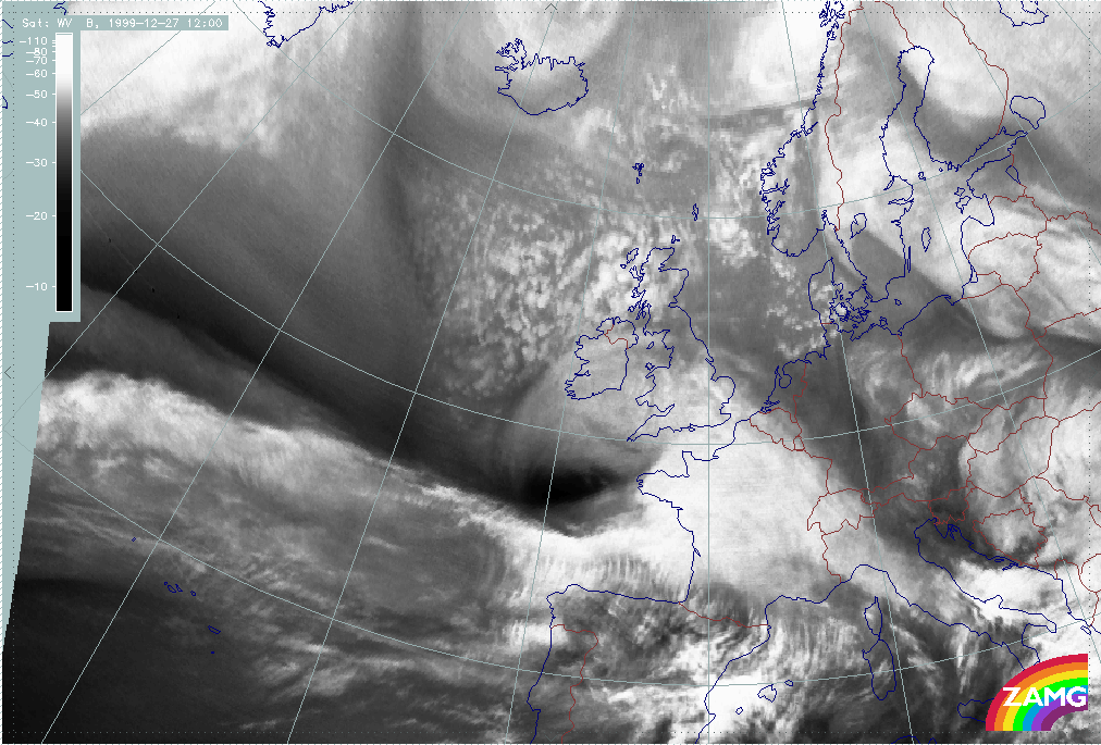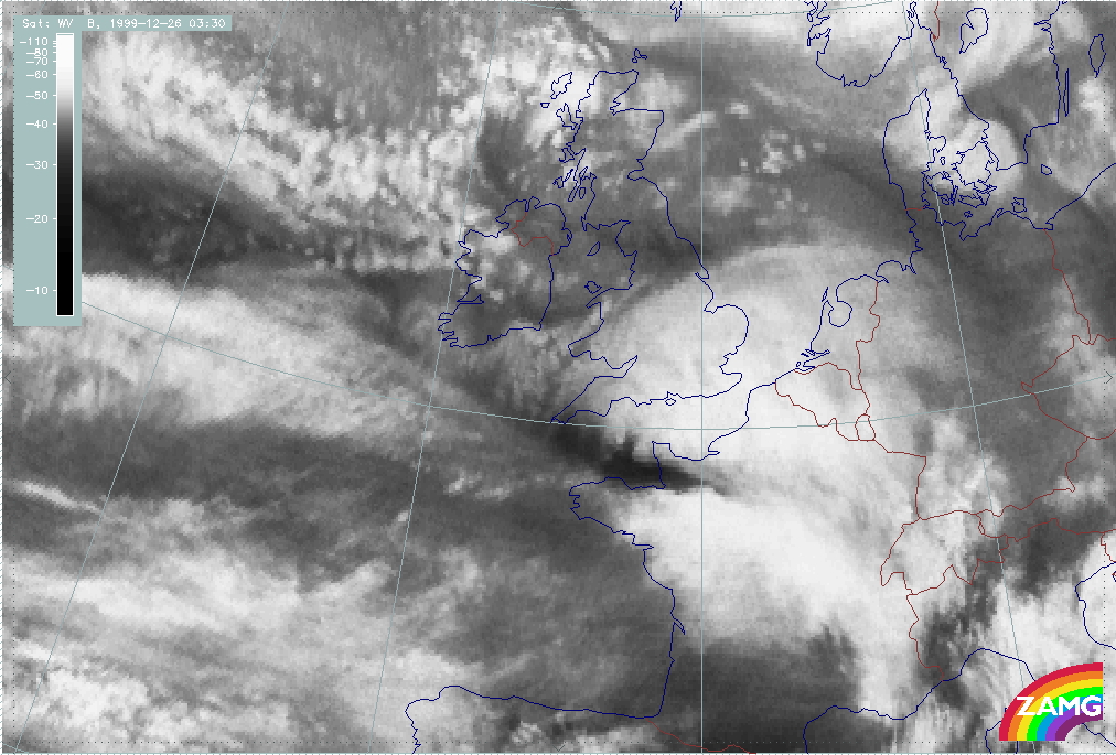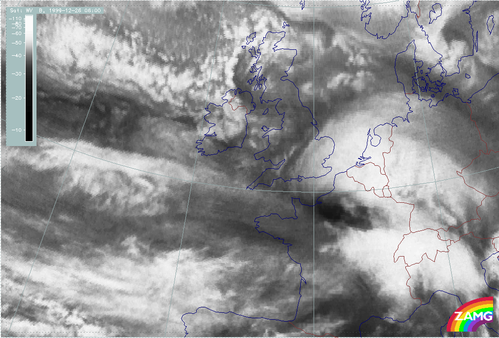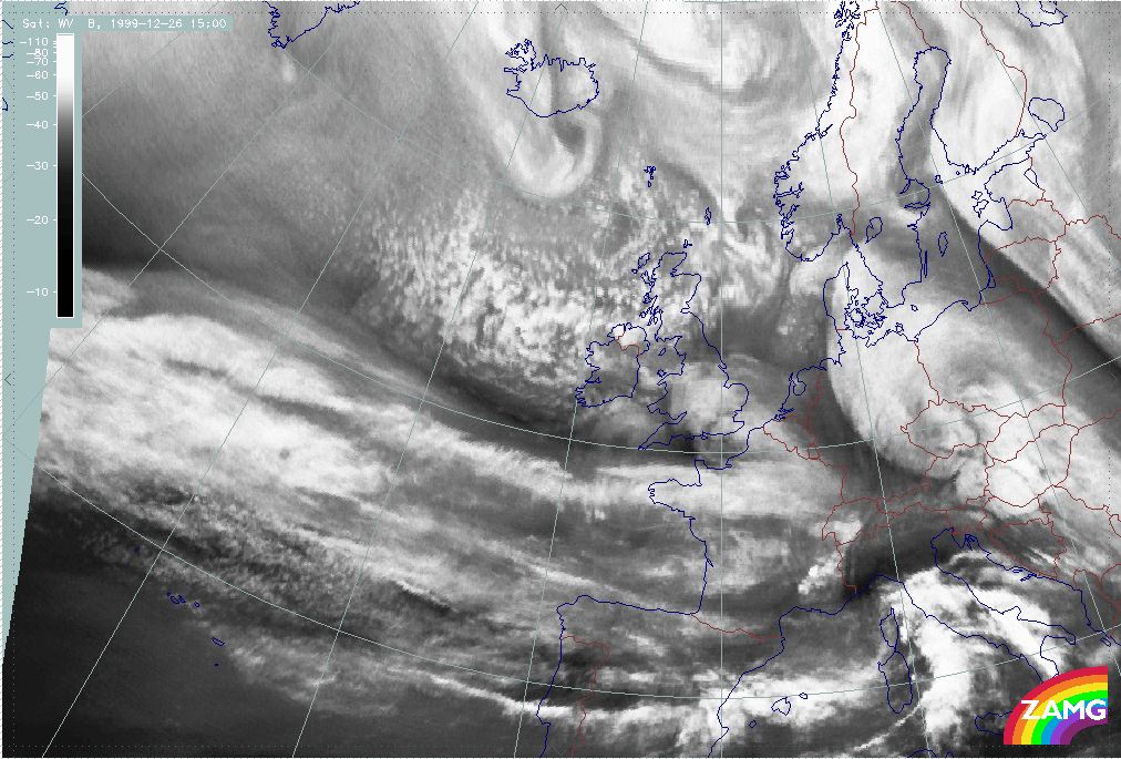 26 December 1999/12.00 UTC - Meteosat WV image; 26/12.00 - 27/18.00 UTC 3-hourly image loop