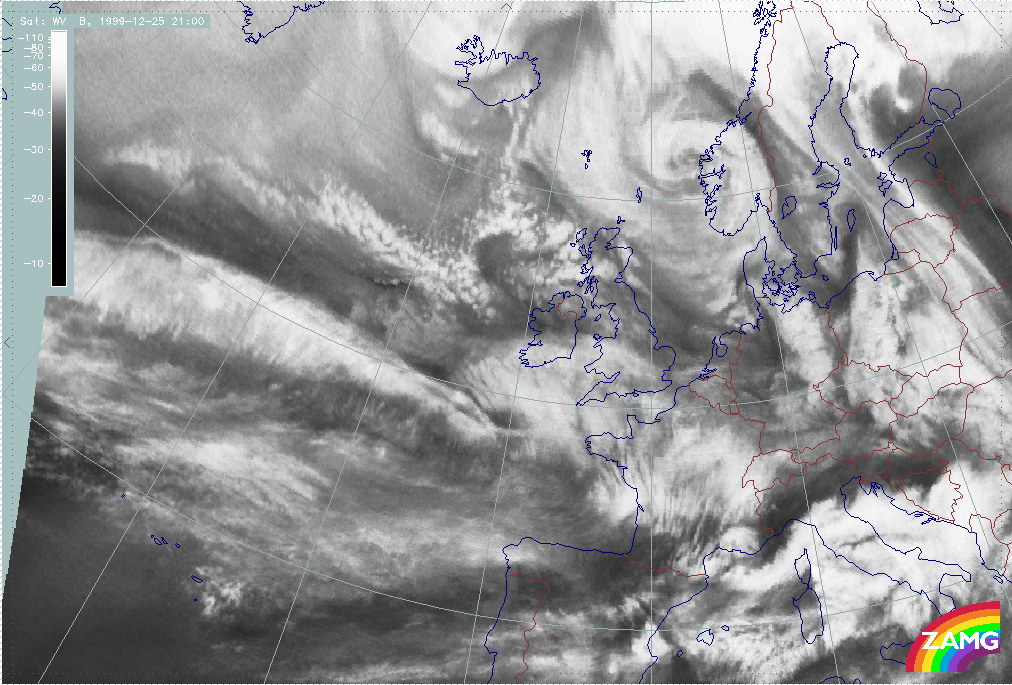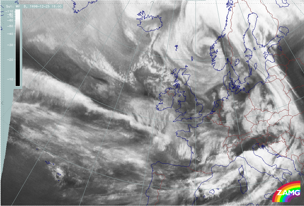 25 December 1999/06.00 UTC - Meteosat WV image; 25/06.00 - 26/00.00 UTC 3-hourly image loop
