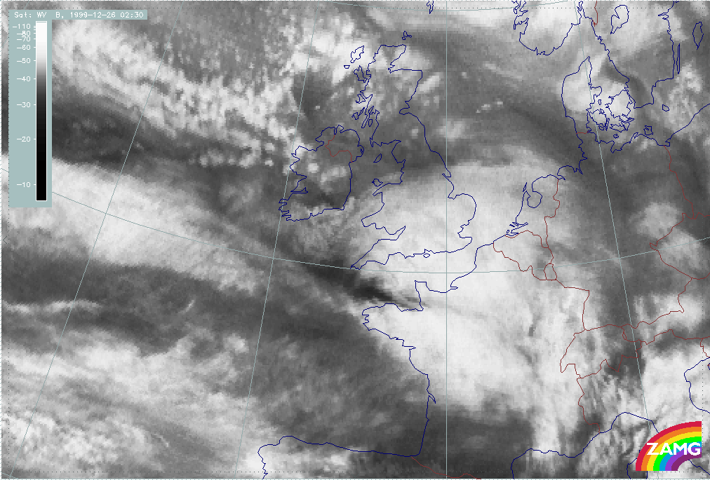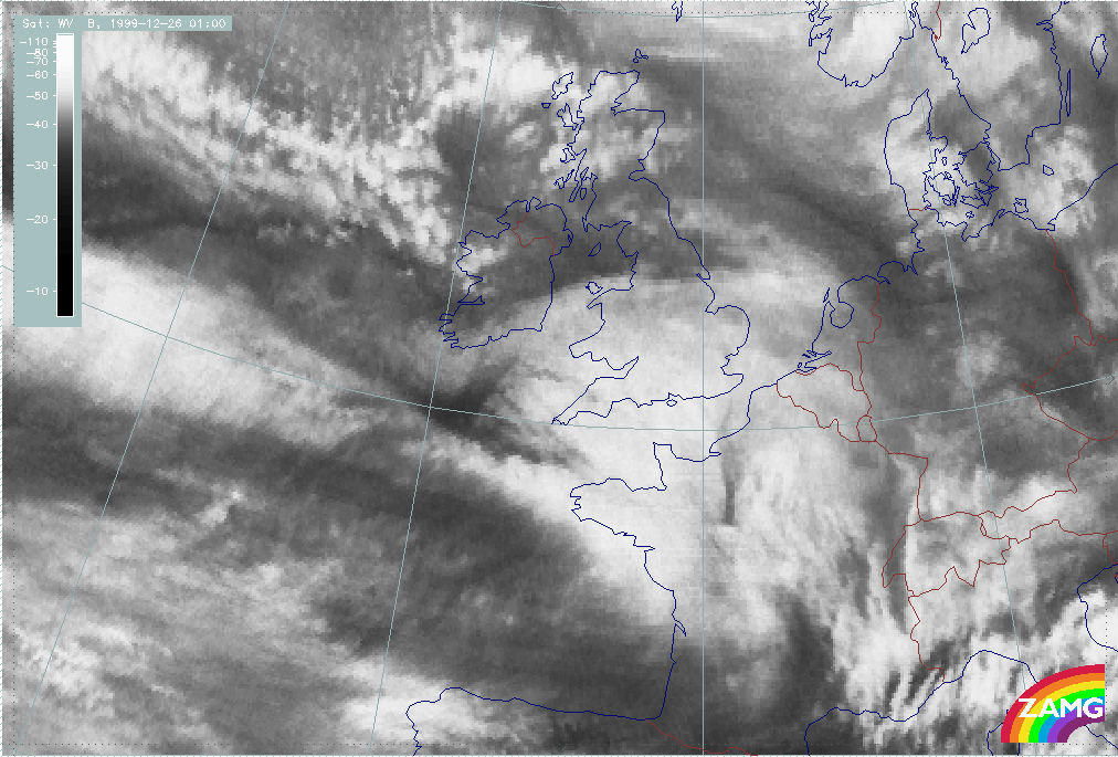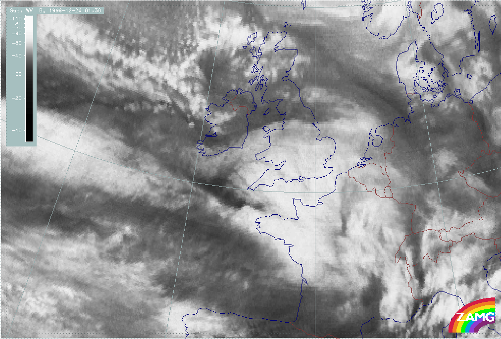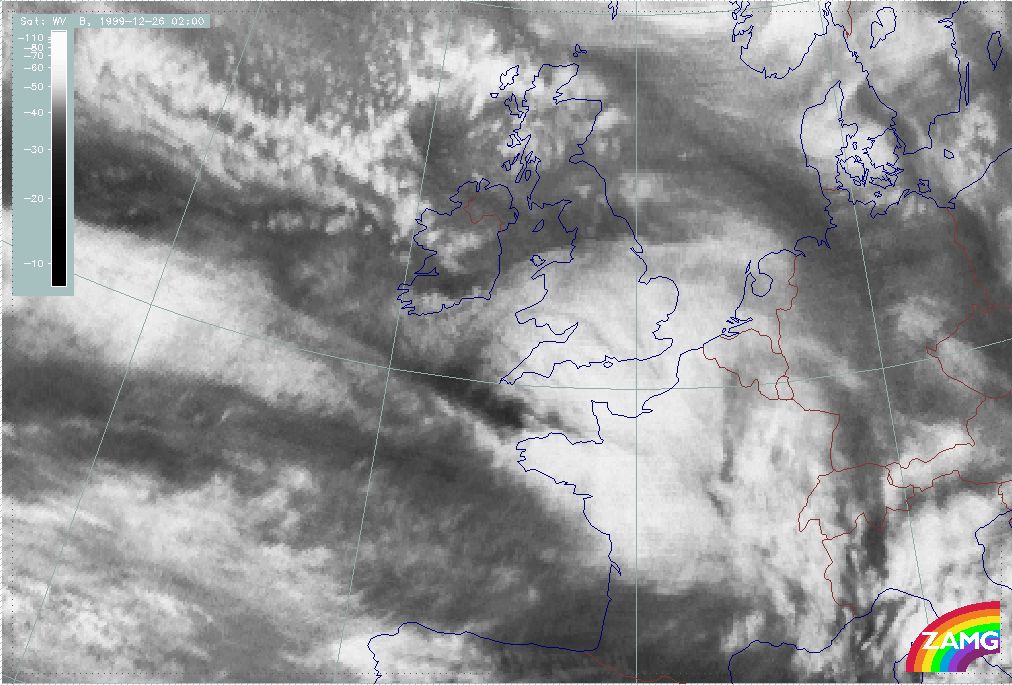 26 December 1999/00.00 UTC - Meteosat WV image; 00.00 - 06.00 UTC half-hourly image loop