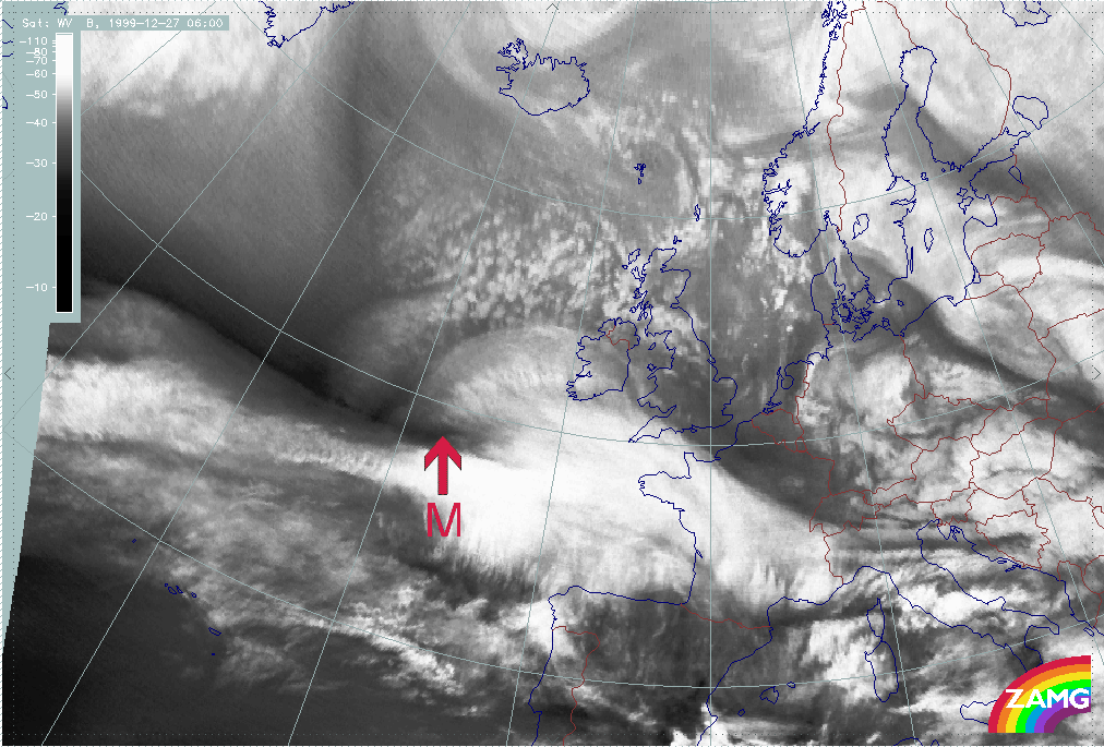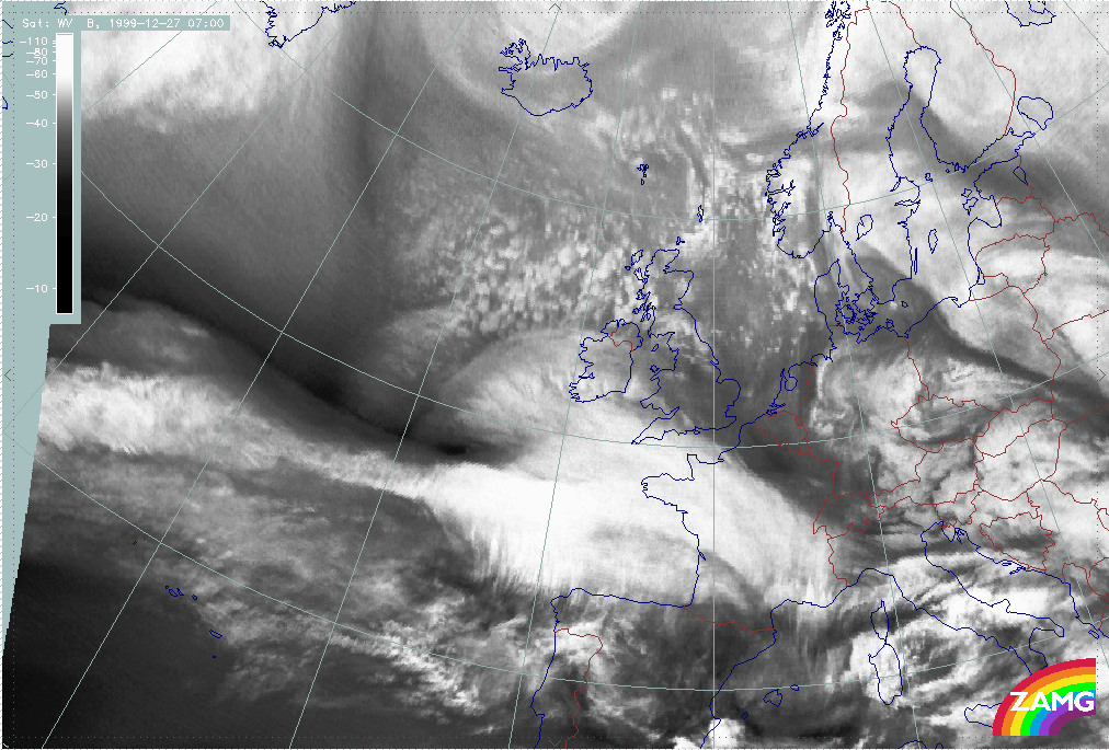 27 December 1999/06.00 UTC - Meteosat WV image; 06.00 - 11.00 UTC hourly image loop