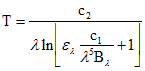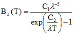 The spectral blackbody radiance is given in units of Wm-2sr-1μm-1, λ is the wavelength in μm, c1 and c2 are the Planck constants (c1=1.19104x108 Wm-2sr-1μm4; c2=1.43877 x104 μm K).
