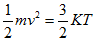 Here m is the mass of a particle and v2 the mean square velocity of particles. K is Boltzmann's constant and T the kinetic temperature.