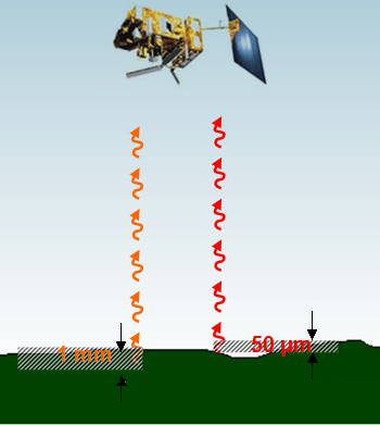 Two temperature measurements with the same spatial extent, performed in the TIR and microwave domains are not directly comparable. This is due to the fact that, whereas TIR LST corresponds to the top thin layer of a few micrometers (up to 50 μm) on the surface, microwave radiation comes from deeper down and depends on soil moisture. For most land surfaces microwave radiation penetration depth is assumed to be around 1 mm (Figure 27).