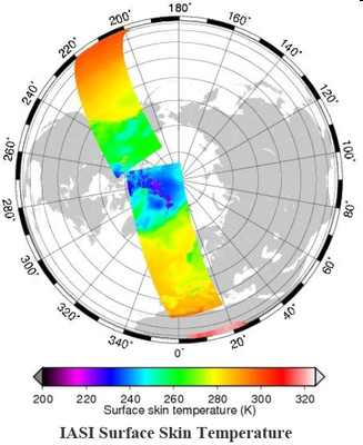 Fig. 14: LST estimated from the EUMETSAT Infrared Atmospheric Sounding Instrument (IASI) onboard the Metop satellite.