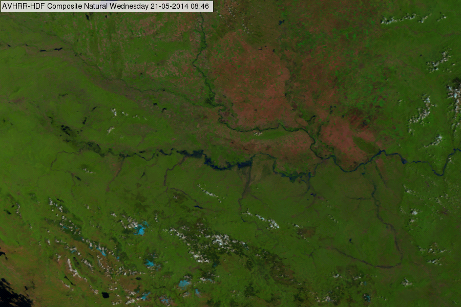 Figure 8: AVHRR, Natural Colour RGB image on 21 May 2014 at 08:46 UTC. Sava River region of Croatia, Bosnia and Serbia