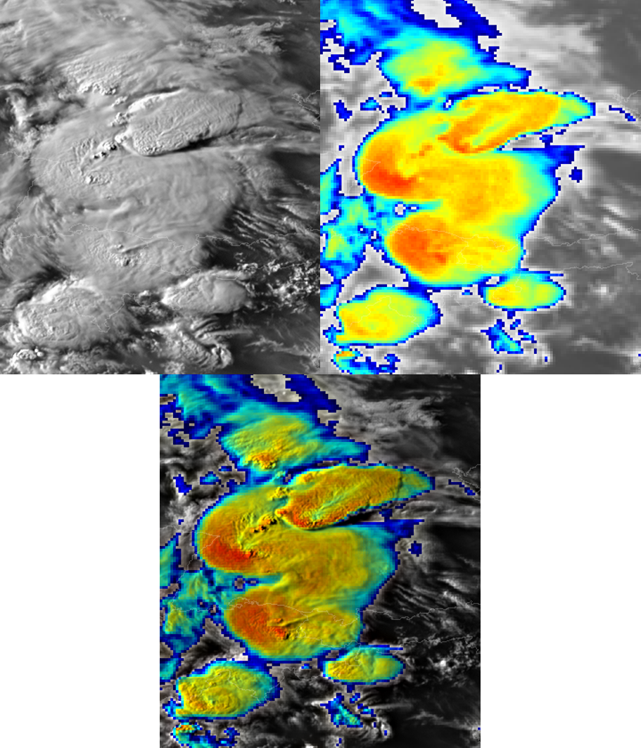 Additionally, it is much easier to follow the evolution of convective storms (or any other weather phenomena) in one product, rather than in two windows, showing the two input bands separately.