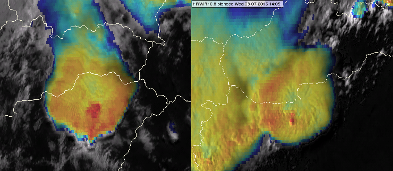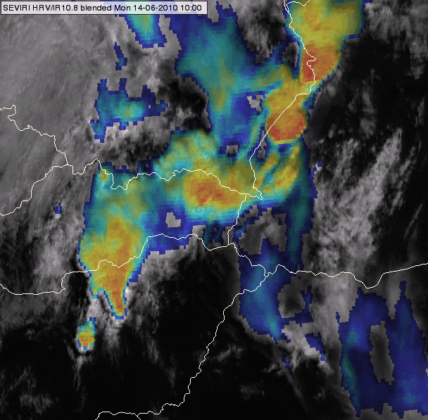 Animation (created from 5-minute HRV/IR10.8 blended images, 14 June 2010 10:00-17:55 UTC).
