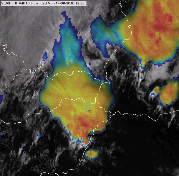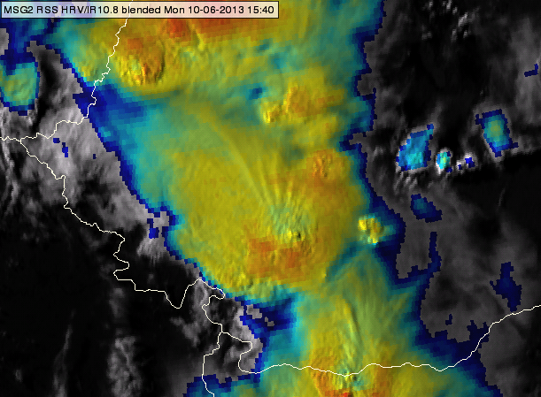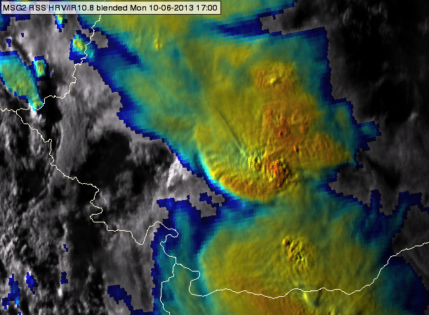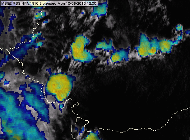 Animation (created from 5-minute SEVIRI HRV/IR10.8 blended images, 10 June 2013, 12:00-17:40 UTC)