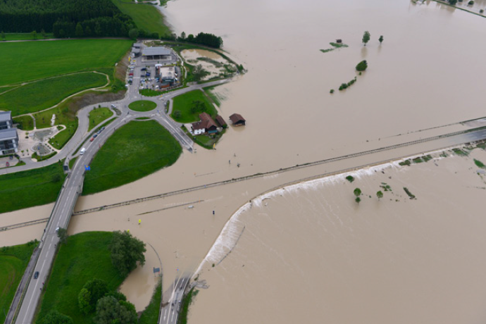 Figure 1.6: The Tiroler Ache overflowing and flooding the A8 highway. Source: Bayerisches Landesamt für Umwelt