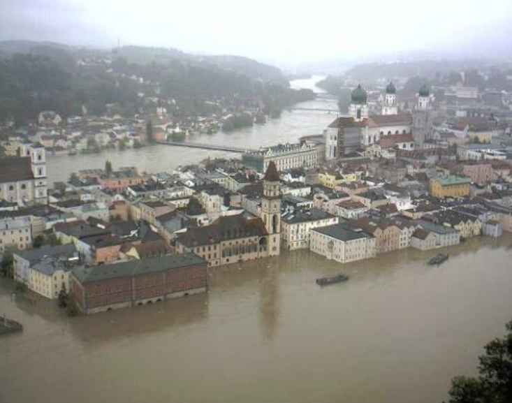 Figure 1.8: Flood in Passau, where the Inn and Ilz enter the Danube. Source: Center for Disaster Management and Risk Reduction Technology