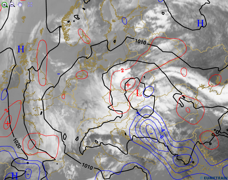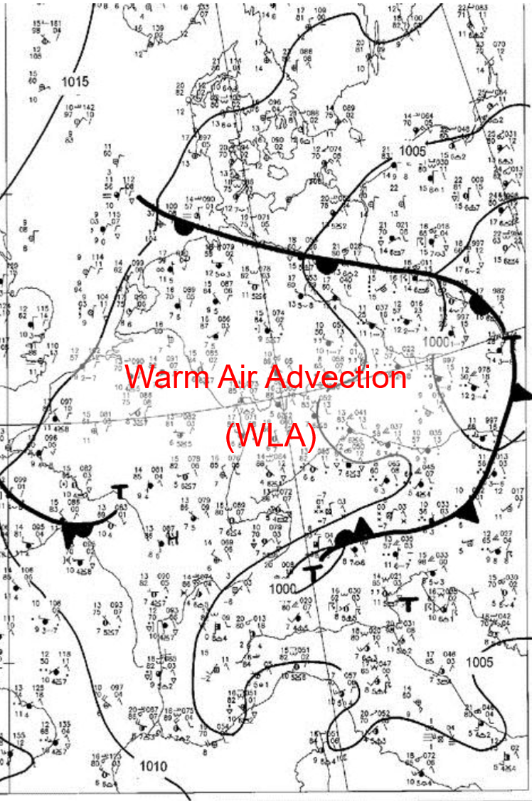 Cold air advection affected an area from Croatia to Greece, while warm air advection was dominant over Poland (Fig. 4.4).