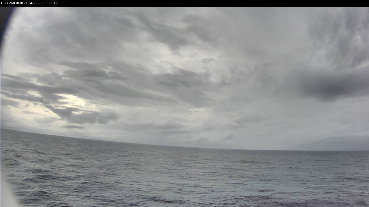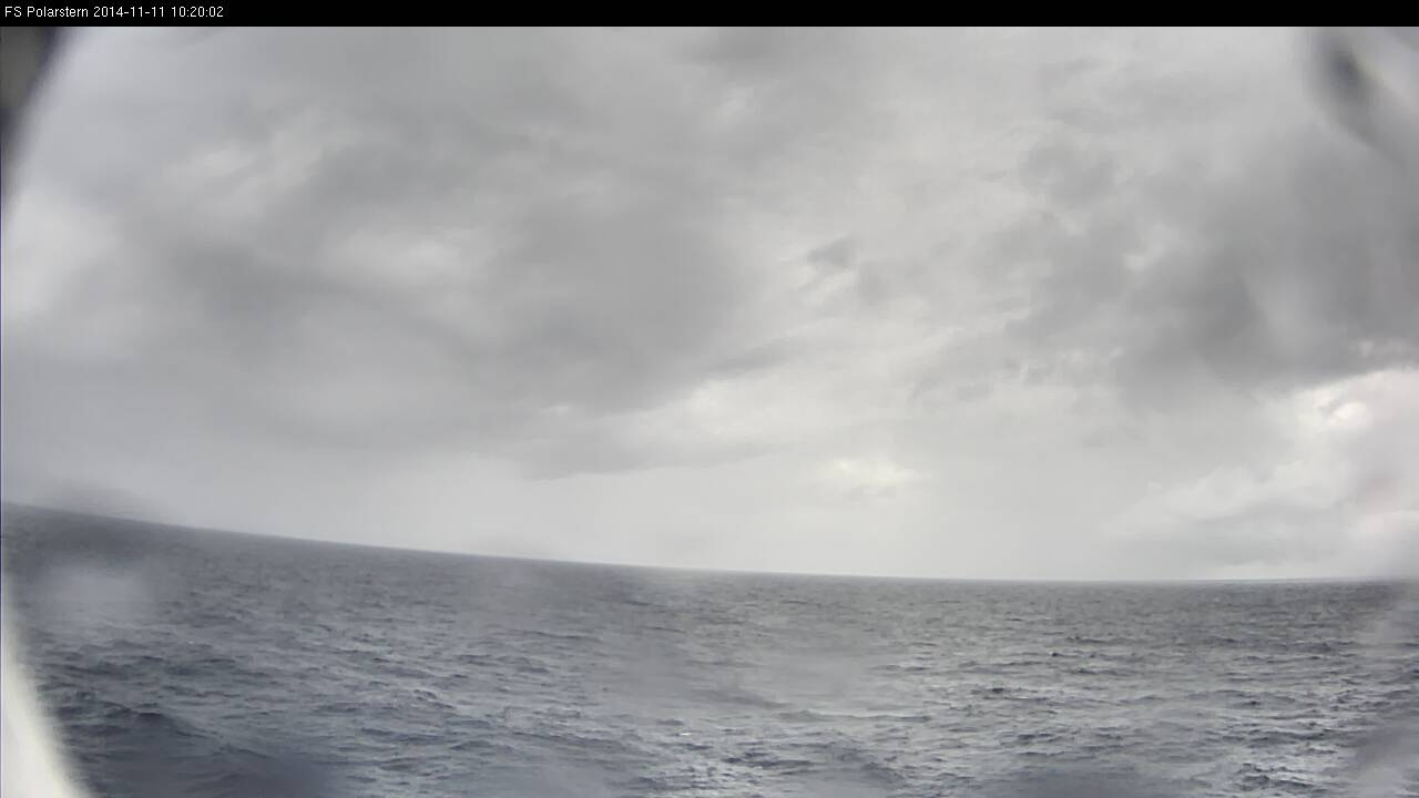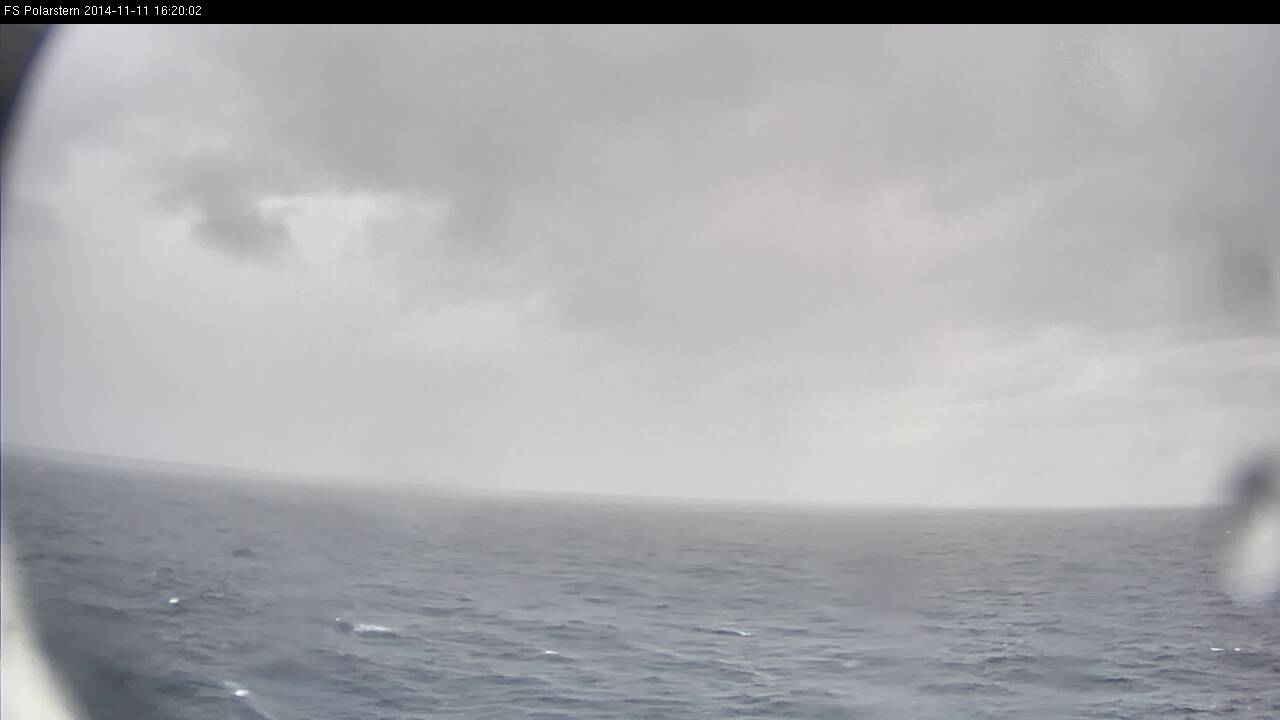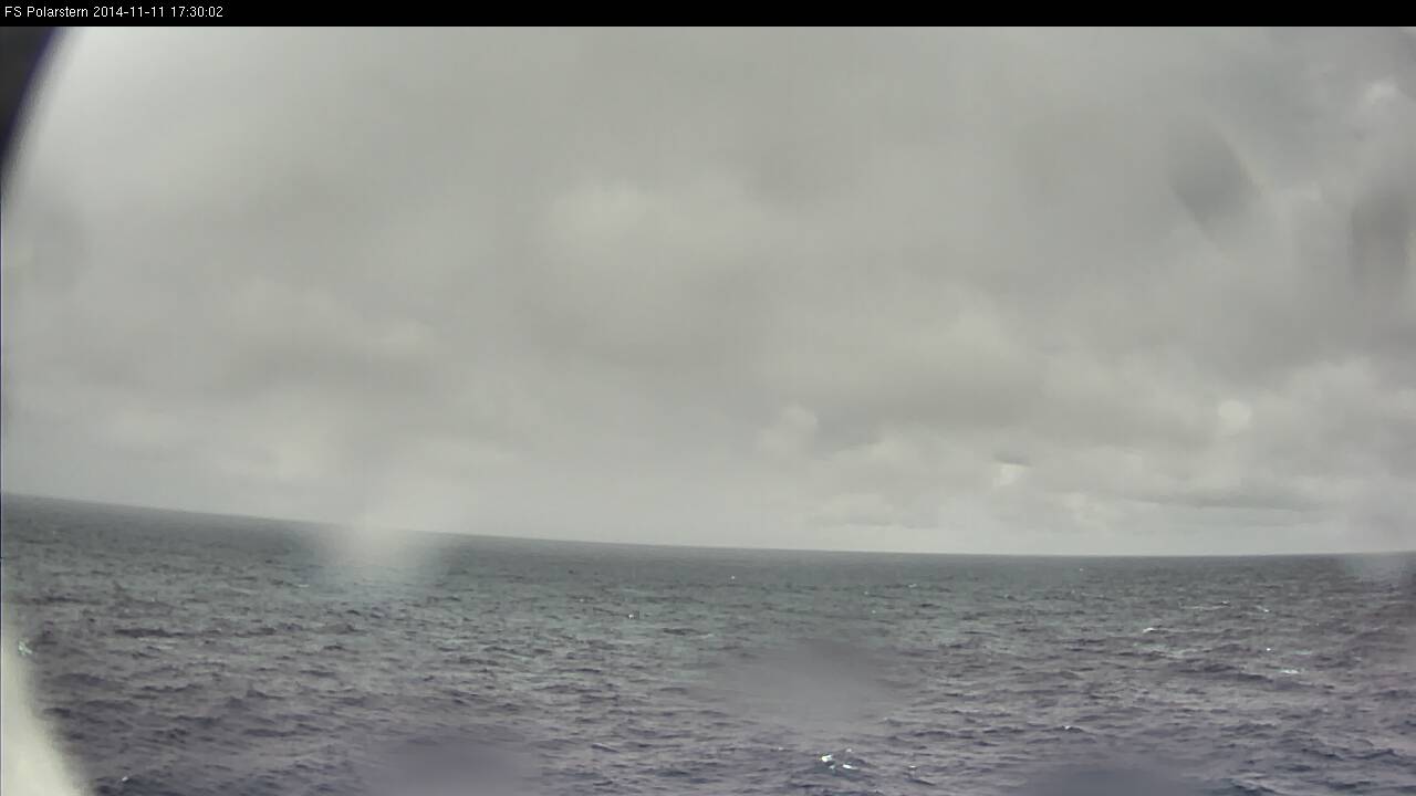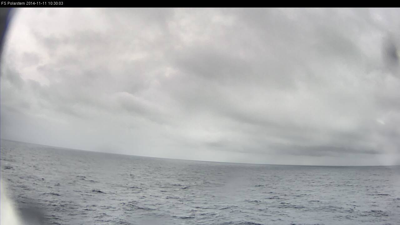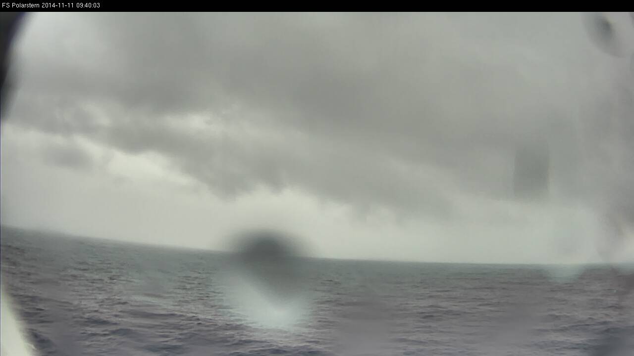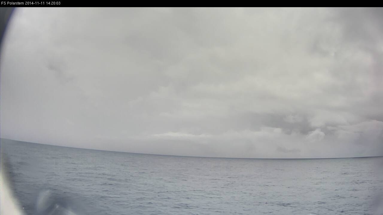 The SYNOP from 12:00 UTC reports a light rainshower. Due to the moist airmass with a dewpoint of 22,9°C and the turbulence, the condensation level is very low. Evaporation from the sea surface is very high because of how warm the water is; the water temperature measures at 28,1°C. The Polarstern had reached the southern side of the ITCZ's convergence and the wind had veered to a southeasterly direction of 120° and 06 knots. The reported cloud layer is 8/8 (overcast) with cumulonimbus capillatus.