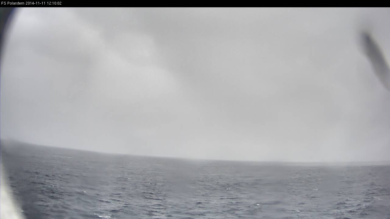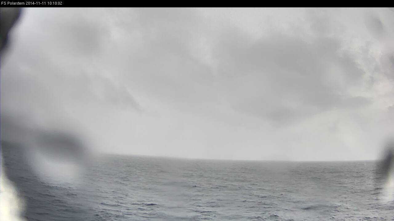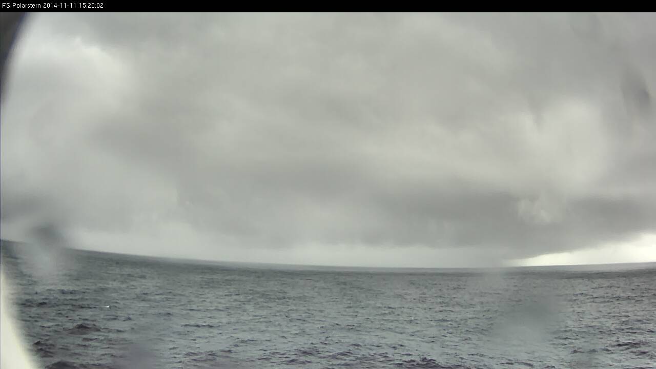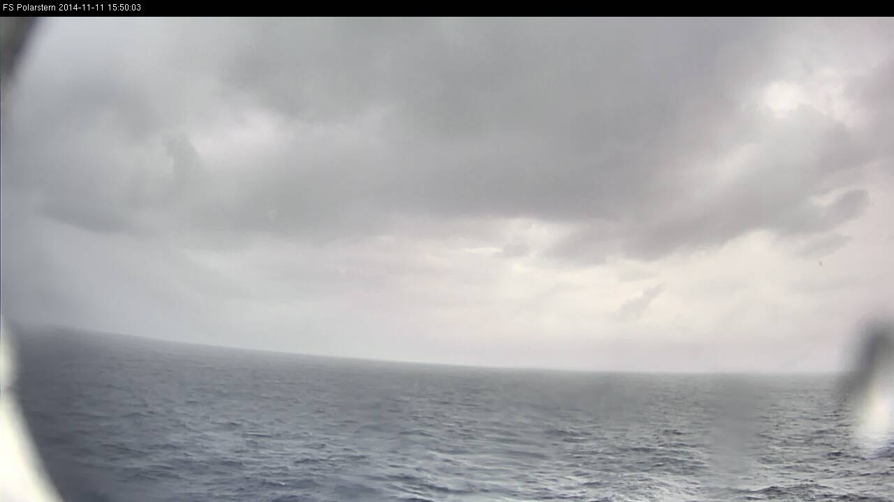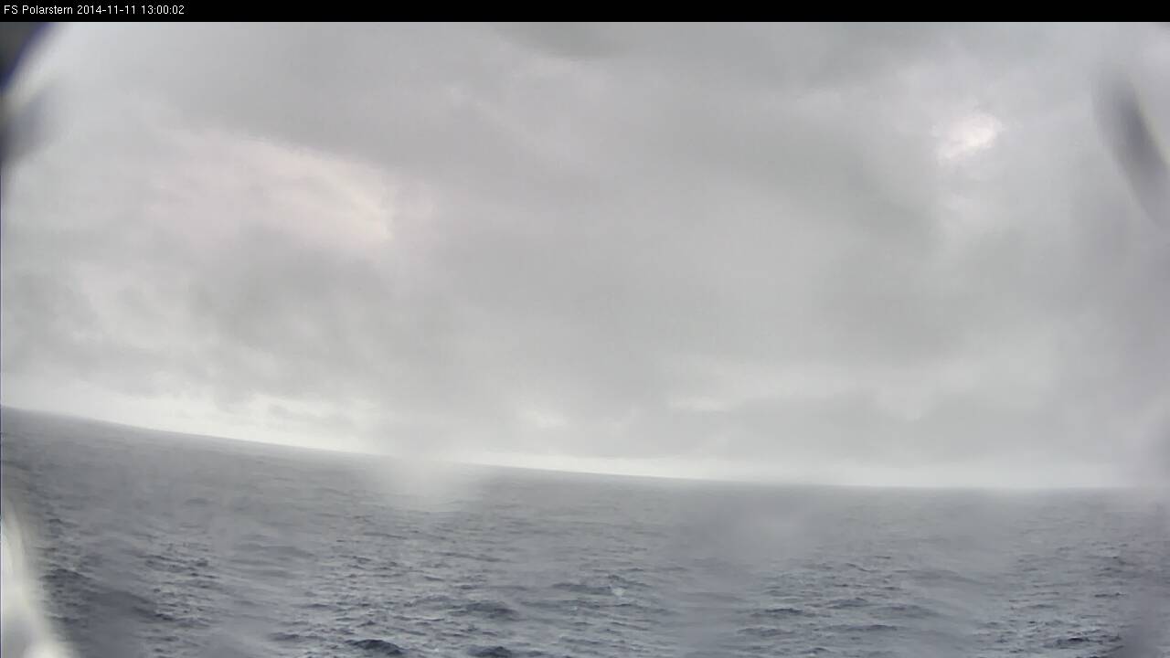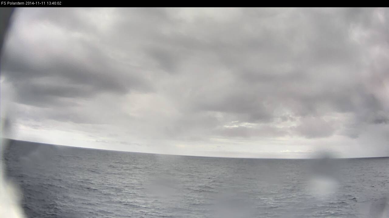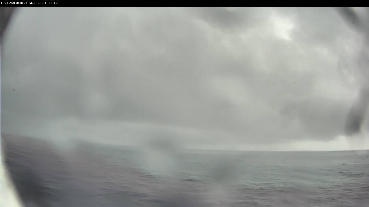 The SYNOP from 12:00 UTC reports a light rainshower. Due to the moist airmass with a dewpoint of 22,9°C and the turbulence, the condensation level is very low. Evaporation from the sea surface is very high because of how warm the water is; the water temperature measures at 28,1°C. The Polarstern had reached the southern side of the ITCZ's convergence and the wind had veered to a southeasterly direction of 120° and 06 knots. The reported cloud layer is 8/8 (overcast) with cumulonimbus capillatus.