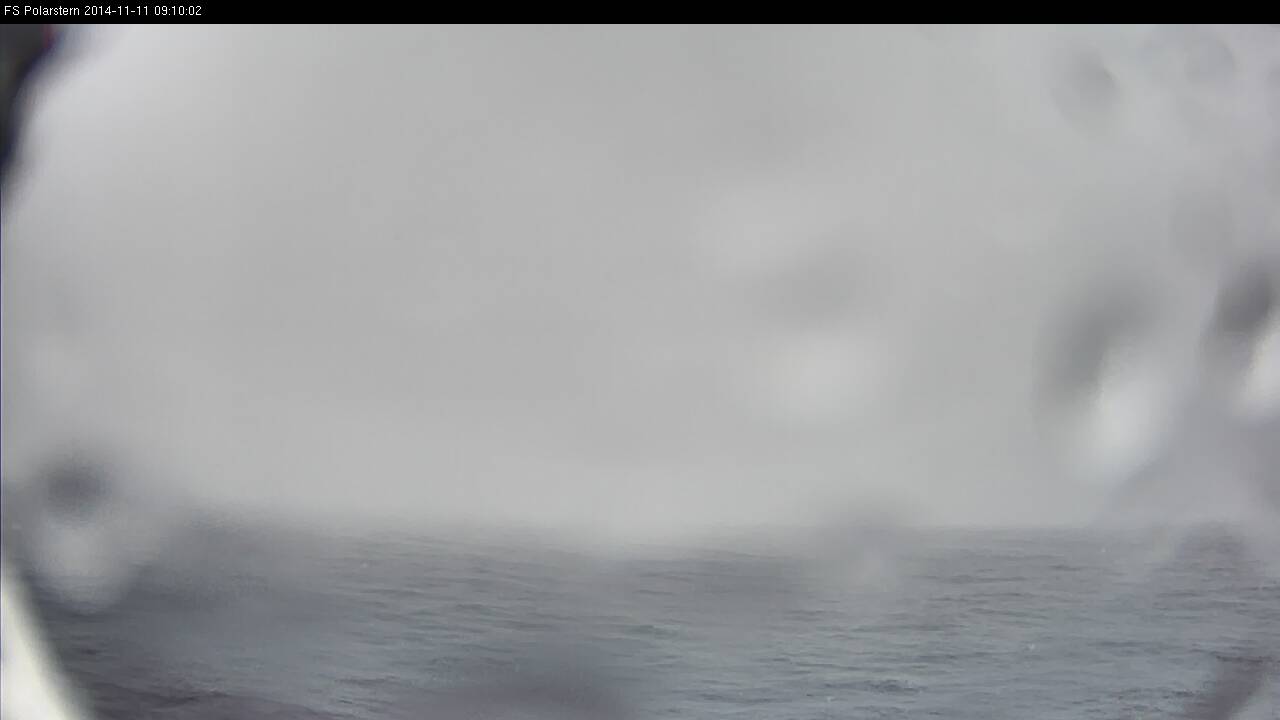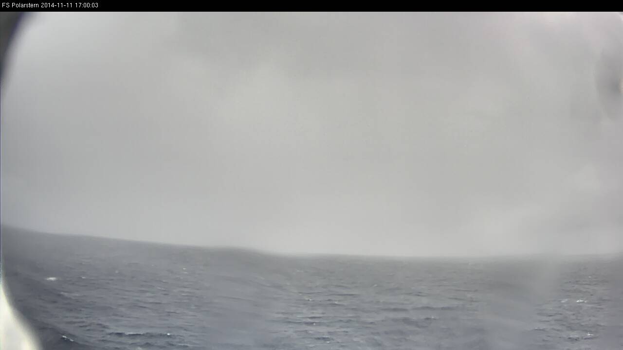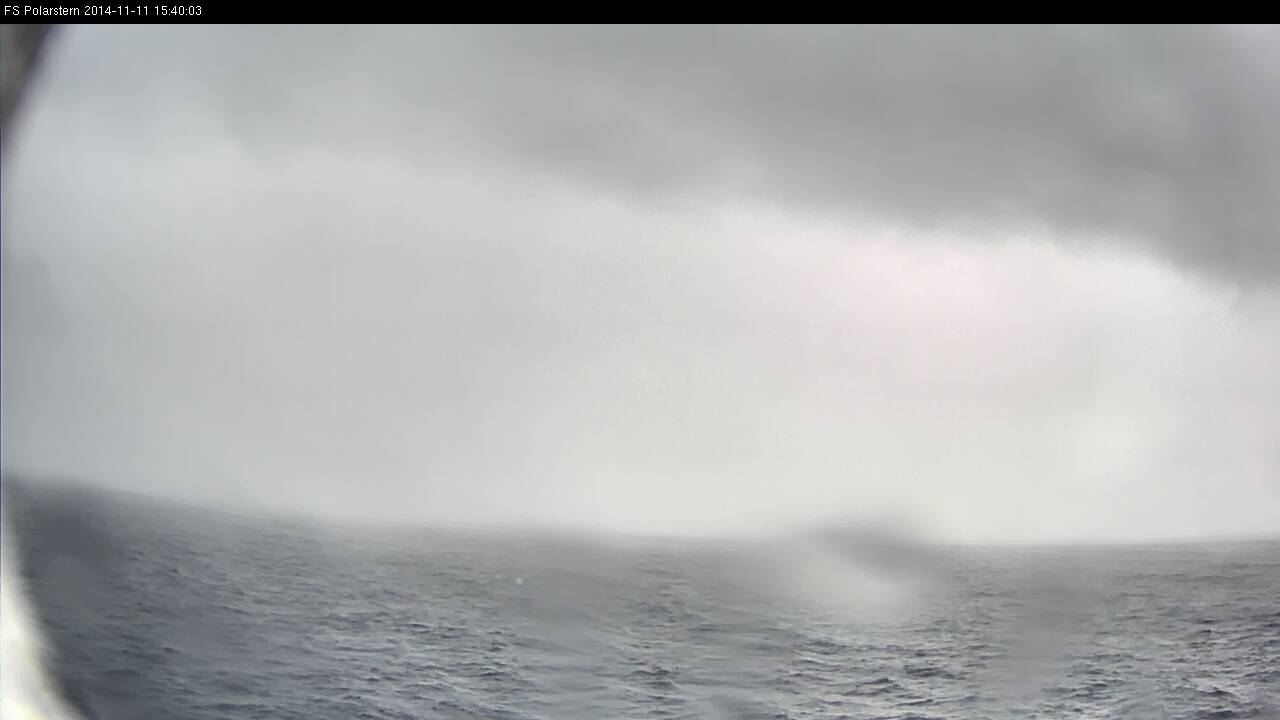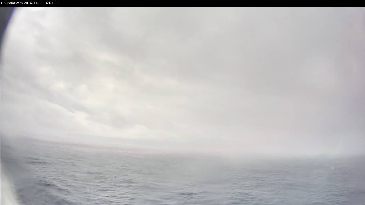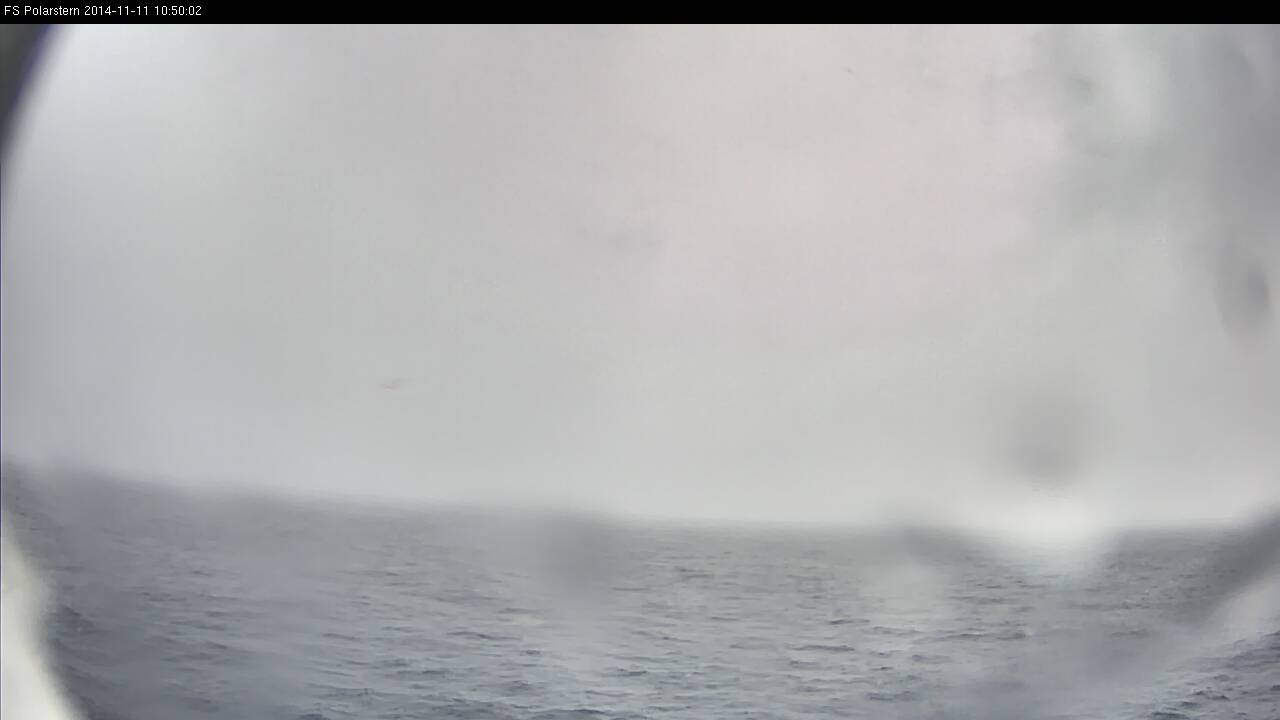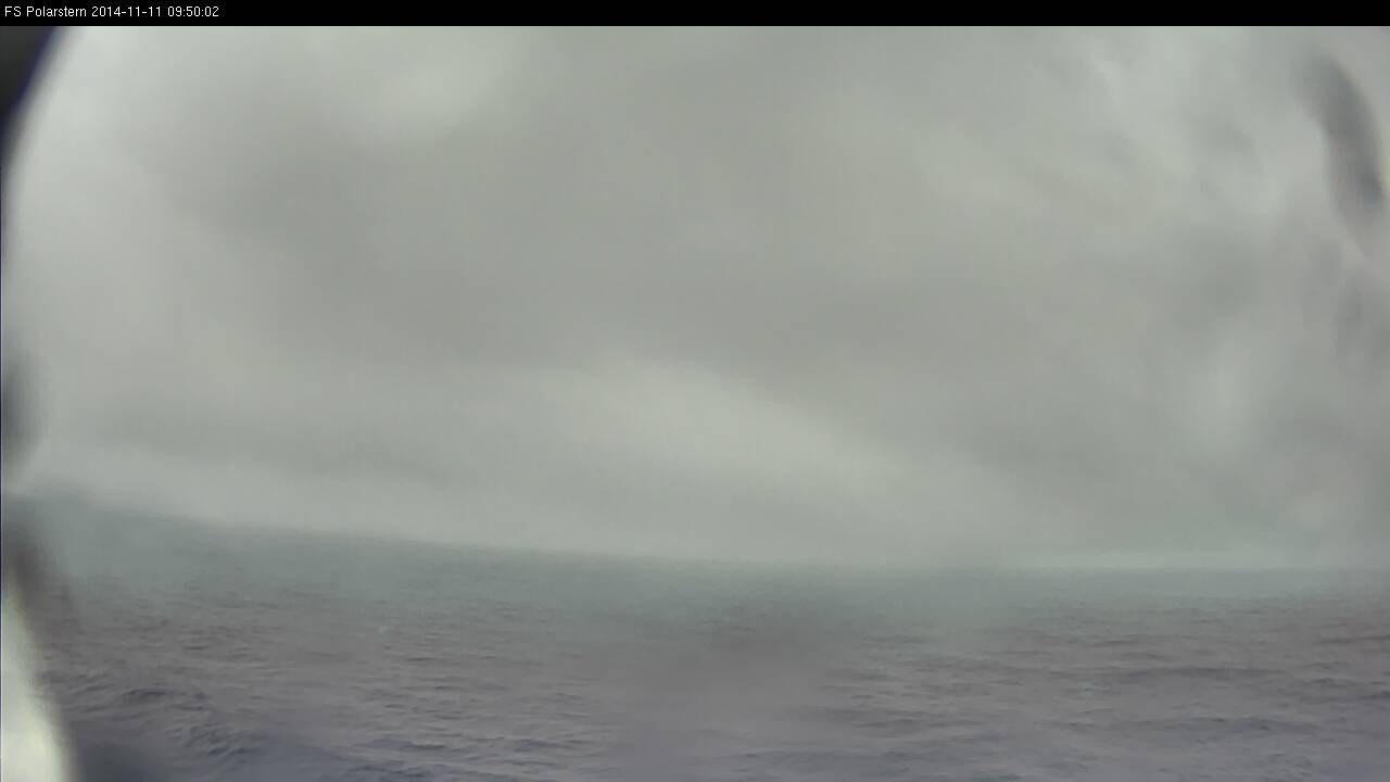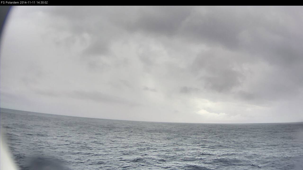 The SYNOP from 12:00 UTC reports a light rainshower. Due to the moist airmass with a dewpoint of 22,9°C and the turbulence, the condensation level is very low. Evaporation from the sea surface is very high because of how warm the water is; the water temperature measures at 28,1°C. The Polarstern had reached the southern side of the ITCZ's convergence and the wind had veered to a southeasterly direction of 120° and 06 knots. The reported cloud layer is 8/8 (overcast) with cumulonimbus capillatus.