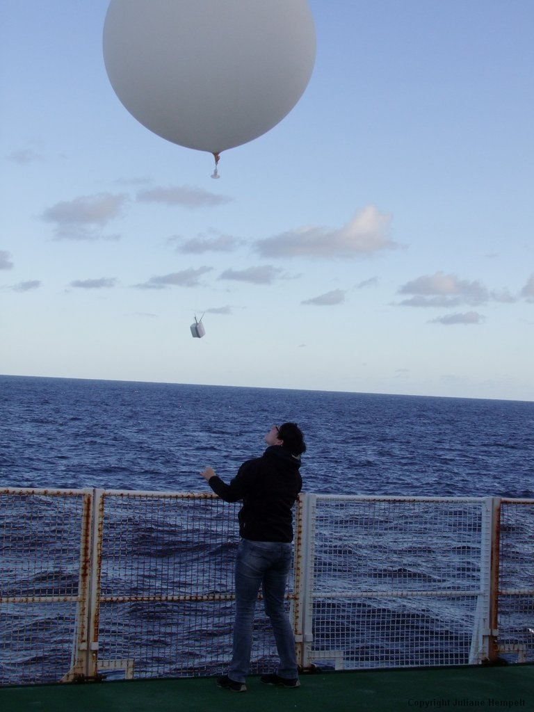 Figure 1-6: Observer/Technician releasing a weather balloon at 12:00 UTC. Source: Juliane Hempelt (DWD).