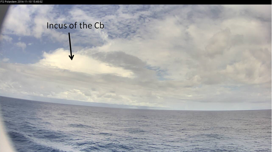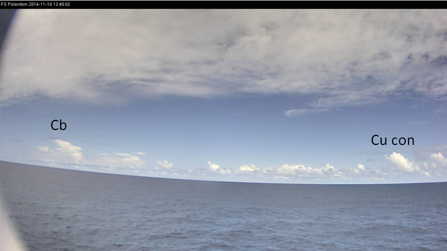 The Polarstern was sailing in the Inter Tropical Convergence Zone. On that day the weather was fair, but shower activity increased during the afternoon.