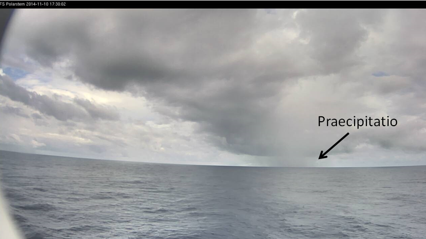 Figure L2-15: 10 Nov 2014, 17:30 UTC. Rain shower with precipitation that reaches the ocean surface (Praecipitatio). Source: DWD.