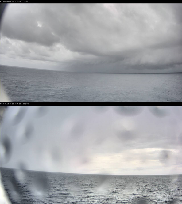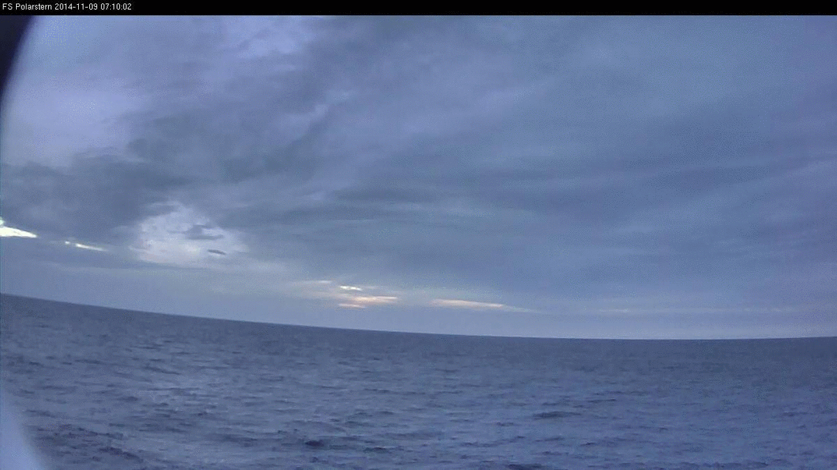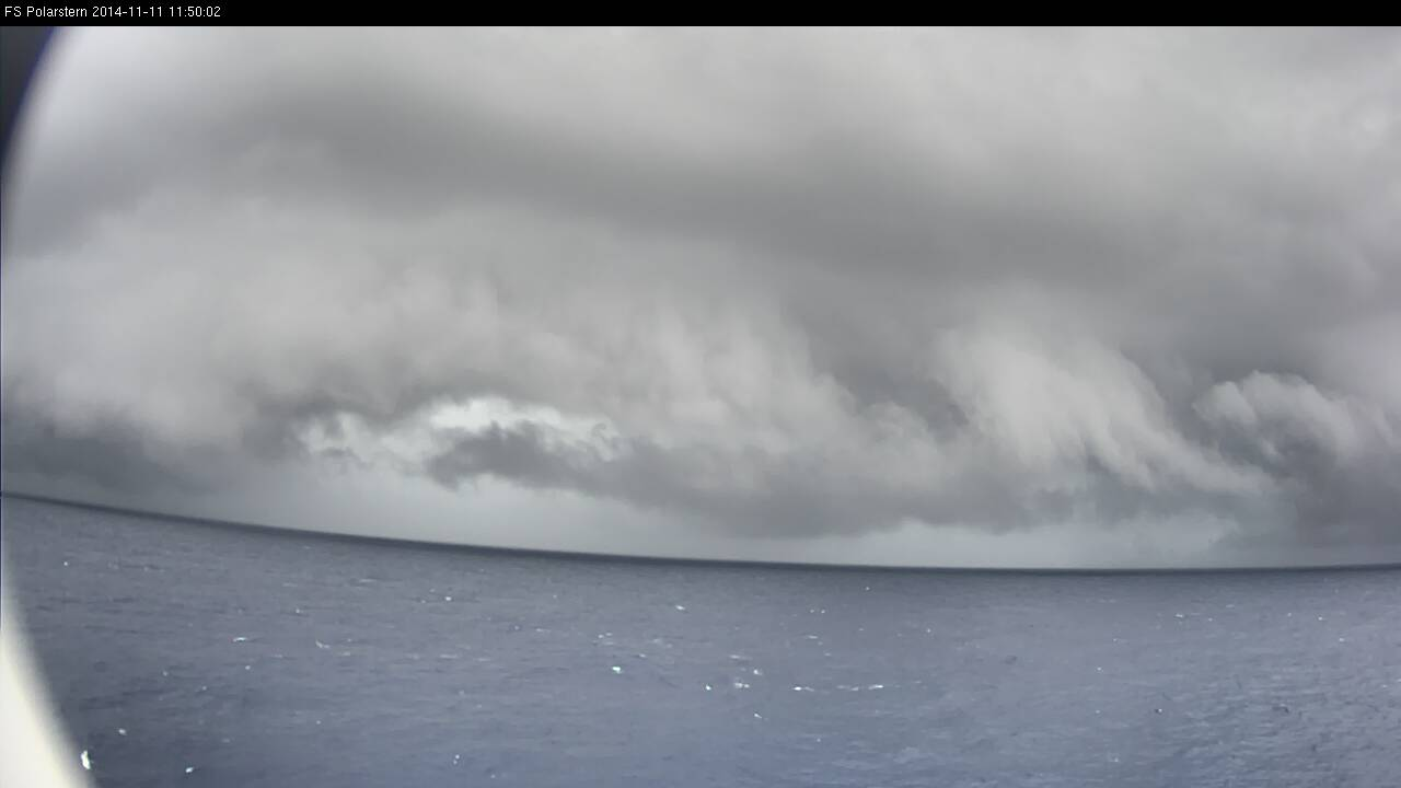 In the morning the weather was mostly cloudy with different cloud layers and some short sunny intervals. From 12:00 UTC on showers began to develop around the Polarstern.
