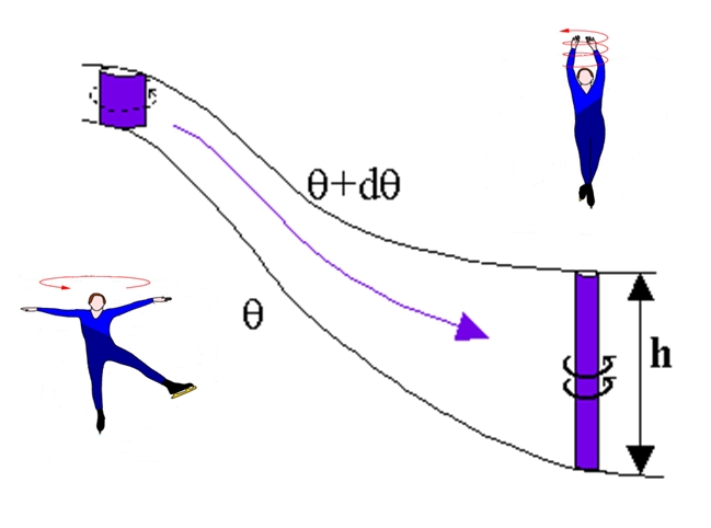 Figure 4: Illustration on how rotation (vorticity) increases when the air column is stretched.