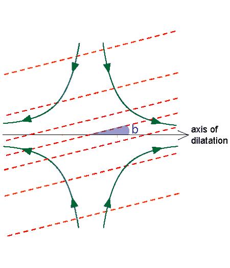 Figure 3.9: frontogenetic active deformation zone; green lines: streamlines; red lines: isentropes;