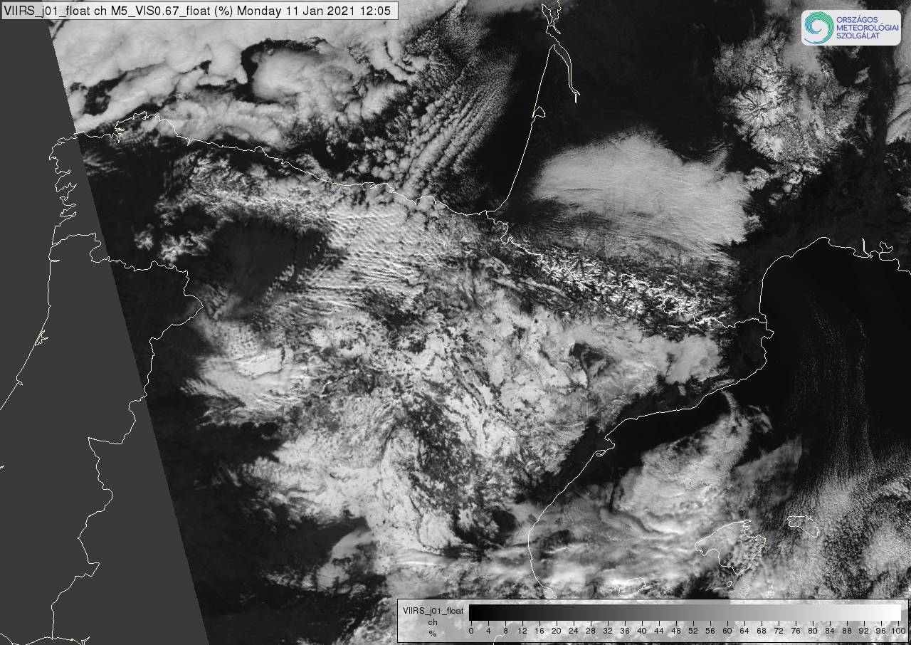 Figure 4: NOAA-20 VIIRS VIS0.67 image visualized in the 0-100% reflectivity range, 11 January 2021 12:05 UTC.
