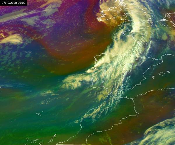 Figure 1: Air Mass RGB at 9 UTC on 7th October 2008.