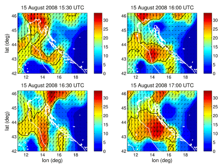 Therefore, a new idea that came up from the analysis of all known cases is that convective system traveling above the sea causes the pressure or wind disturbance which, if other circumstances are favorable, can cause meteotsunami formation. The reason for that idea was the fact that in all Adriatic cases a convective cloud or system was present and moving towards the affected area.