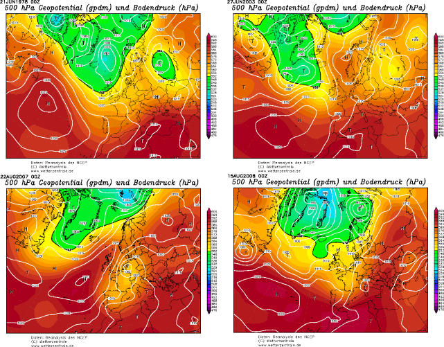Synoptic situations were similar in three of four cases, whereas in the case of 27 June 2003 large scale streaming was a bit different, as seen in the image below: