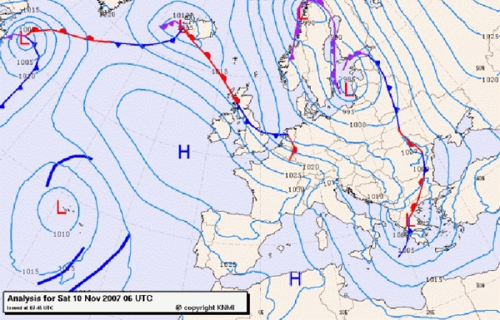 Figure 5: KNMI - analysis 10 November 2007, 0600UTC