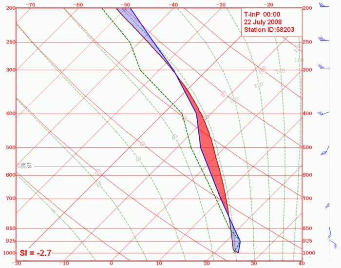 Figure 7: TlnP diagram of station 58203 in convective cloud area
