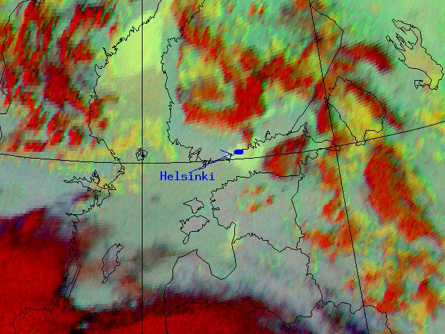 On 21st May 2009 a dense advection fog coming from the Gulf of Finland caused low visibilities across the region around Helsinki. The fog started to move inland from the Gulf around 1700 UTC and persisted until next morning on land areas while coastal water areas cleared during daytime. Figure 1 illustrates the situation at 1700 UTC with FMI's fog (24h microphysical) product from Meteosat SEVIRI data (*Red: Difference IR12.0 - IR10.8 *Green: Difference IR10.8 - IR8.7 *Blue: Channel IR10.8 ), notice also the fog or low level cloud area in the middle of the eastern Swedish coast.