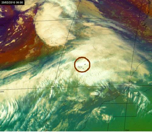 Figure 6: Meteosat 9 Severe Storm RGB on 20/02/2010 at 06 UTC.