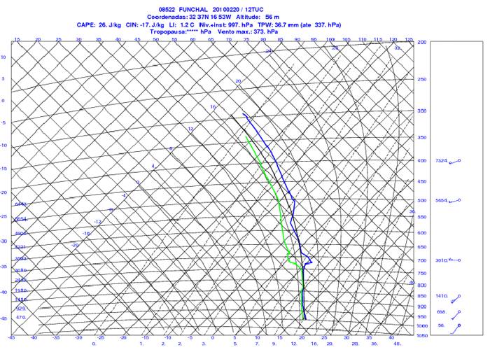 Figure 4: Funchal Radiosounding on 20/02/2010 at 12 UTC.