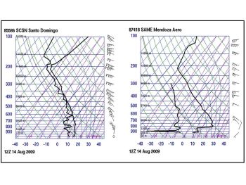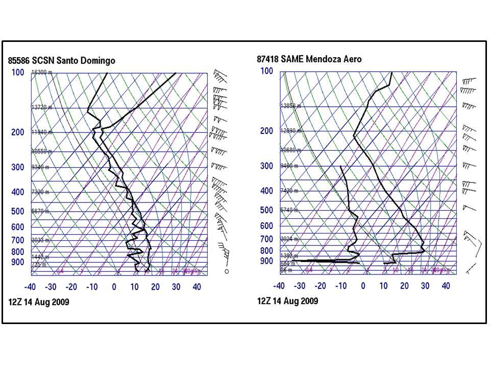 14 August 2009/12 UTC - Radio soundings at Santo Domingo (west side of Andes) and Mendoza (East side).