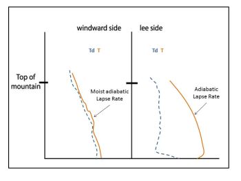 Vertical stability, and particularly the presence of stable layers upstream near the top of the mountain barrier, favors Zonda events. An unstable low-level layer downstream brings the Zonda closer to the surface. Once the Zonda has developed, a nearly dry adiabatic lapse rate is established and the troposphere becomes unstable.