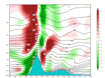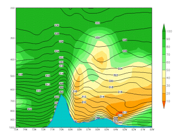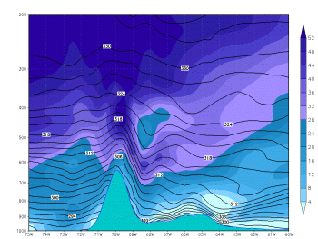 Regarding the following NWP vertical cross sections, it should be noted that the low resolution of NWP models simplifies topographical shapes and how they influence the tropospheric flow.
