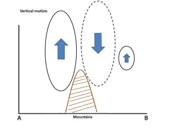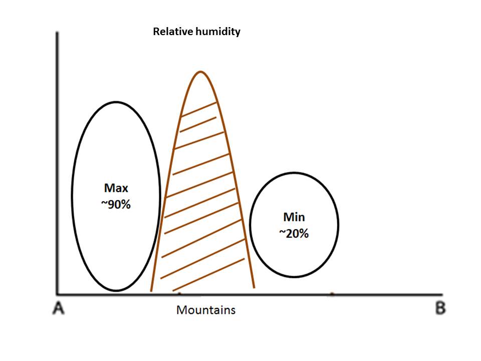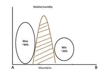 This field resembles the differential vertical motions and the different cloud structures at both sides of the mountains. Thick humid layer on the windward side, dry layer on the lee side.
