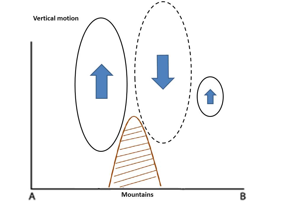 Maximum upward motion on the windward side and maximum downward motion on the lee side. -
