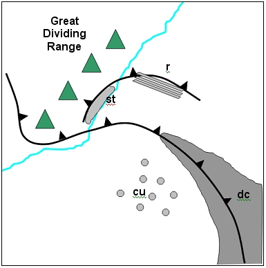 Figure 4: Schematic of the cloud signatures of a Southerly Buster.
