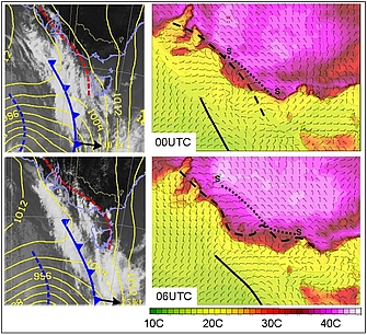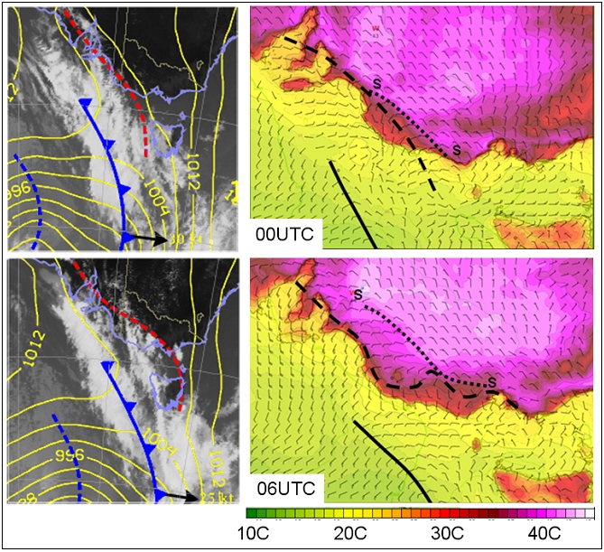 - Surface temperature. Gradients in surface temperature are important in monitoring frontogenesis (Type 2 front, Central Australian front). Land and sea surface temperature contrasts play a significant role in the propagation of the Southerly Buster.