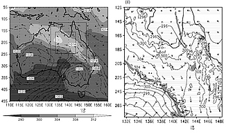 Figure 21: Parameters: MSLP, surface wind, surface temperatures. Images courtesy of JMA and BOM
