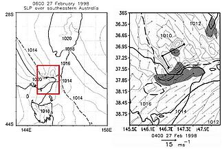- Surface and low level wind speed and direction. Changes in wind direction define the nose of the front. The parameter is particularly useful in defining the location of fronts over northern Australia, where the pressure gradients are often weak.