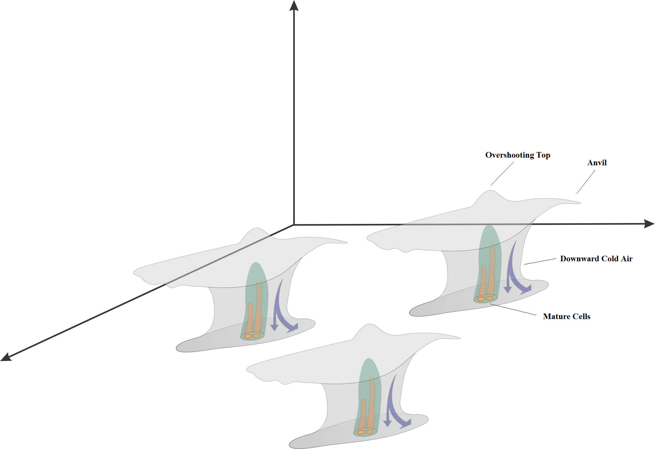 Convergence of warm air and moisture in the lower levels feeds the convection process.
