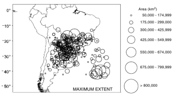 SSA consists of southern Bolivia, southern Brazil, Paraguay, northern Argentina, and Uruguay. It is home to the world's fifth largest river basin, the La Plata Basin (image on the left). Some of the world's most intense thunderstorm complexes (e.g. mesoscale convective complexes (MCC) and mesoscale convective systems (MCS) are found there. MCC precipitation measurements help to estimate the hydroclimate of the La Plata Basin. The MCC generally form around 20°S - 35°S and 70°W - 45°W.