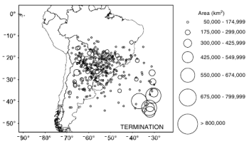 For the most part, the MCC ran their course (initiation, maximum extent and termination) inside 20°S - 30°S.