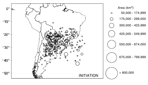 A região denominada como Sul da América do Sul (SAS) compreende o sul da Bolívia, Paraguai, norte da Argentina e Uruguai e sul do Brasil. Nesta região encontra-se a quinta maior bacia hidrográfica do mundo, a Bacia do rio da Prata (imagem à esquerda). Alguns dos complexos de tempestades mais intensos do mundo, como por exemplo, complexos convectivos de mesoescala (CCM) e sistemas convectivos de mesoescala (SCM) são encontrados nesta região. As medidas de precipitação de CCM ajudam a estimar o hidroclima da Bacia do Rio da Prata. Os CCM geralmente formam-se cerca de 20°S - 35°S e 70°W - 45°W.