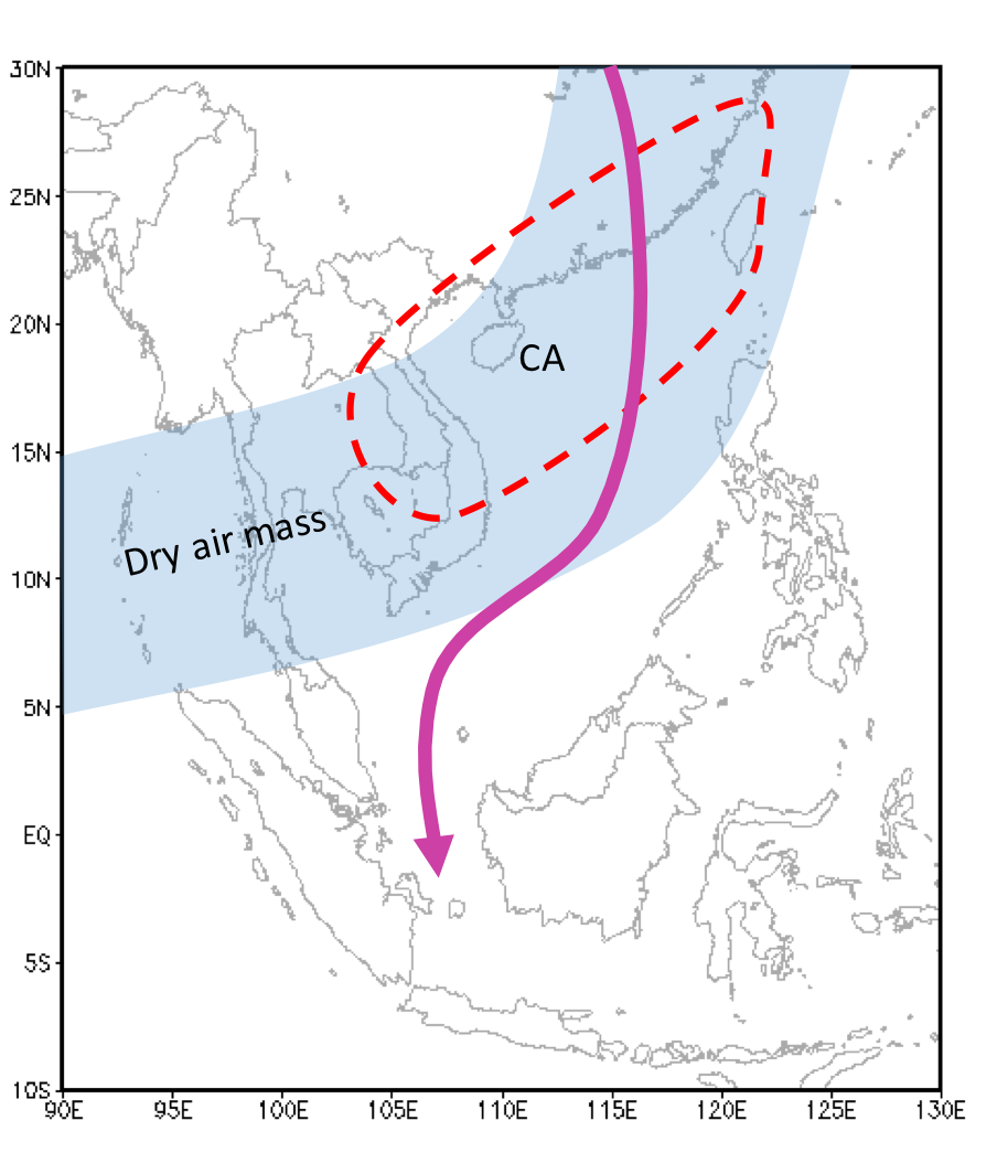 Combined with the NCS, the vorticity advection of the easterly winds provides favorable conditions for the formation of the Borneo vortex.