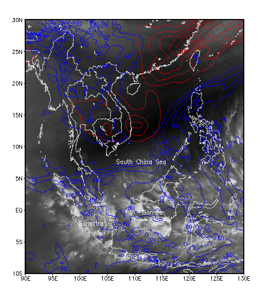 A surface temperature drop around 5°C within 24 hours is considered the other sign of an NCS occurrence in Hong Kong. 4-6 days after this occurs, a severe weather warning can be released and heavy precipitation expected around eastern Sumatra and western Java.