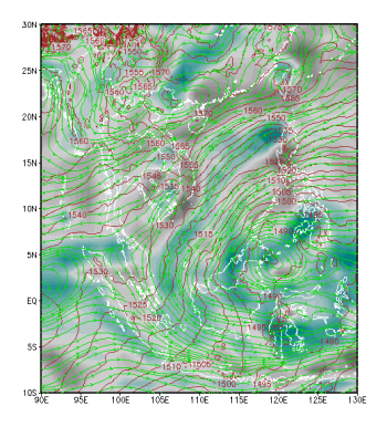 Geopotential height, Streamline and Vorticity at 850 hPa (vortex cases)